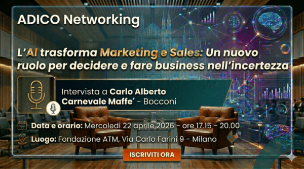 Nasce ADICO Networking, il nuovo format dedicato al dialogo qualificato tra manager, dove visione strategica, innovazione e relazione professionale si incontrano. Non un evento frontale, ma una conversazione guidata tra professionisti delle vendite e del marketing che ogni giorno prendono decisioni in contesti complessi.